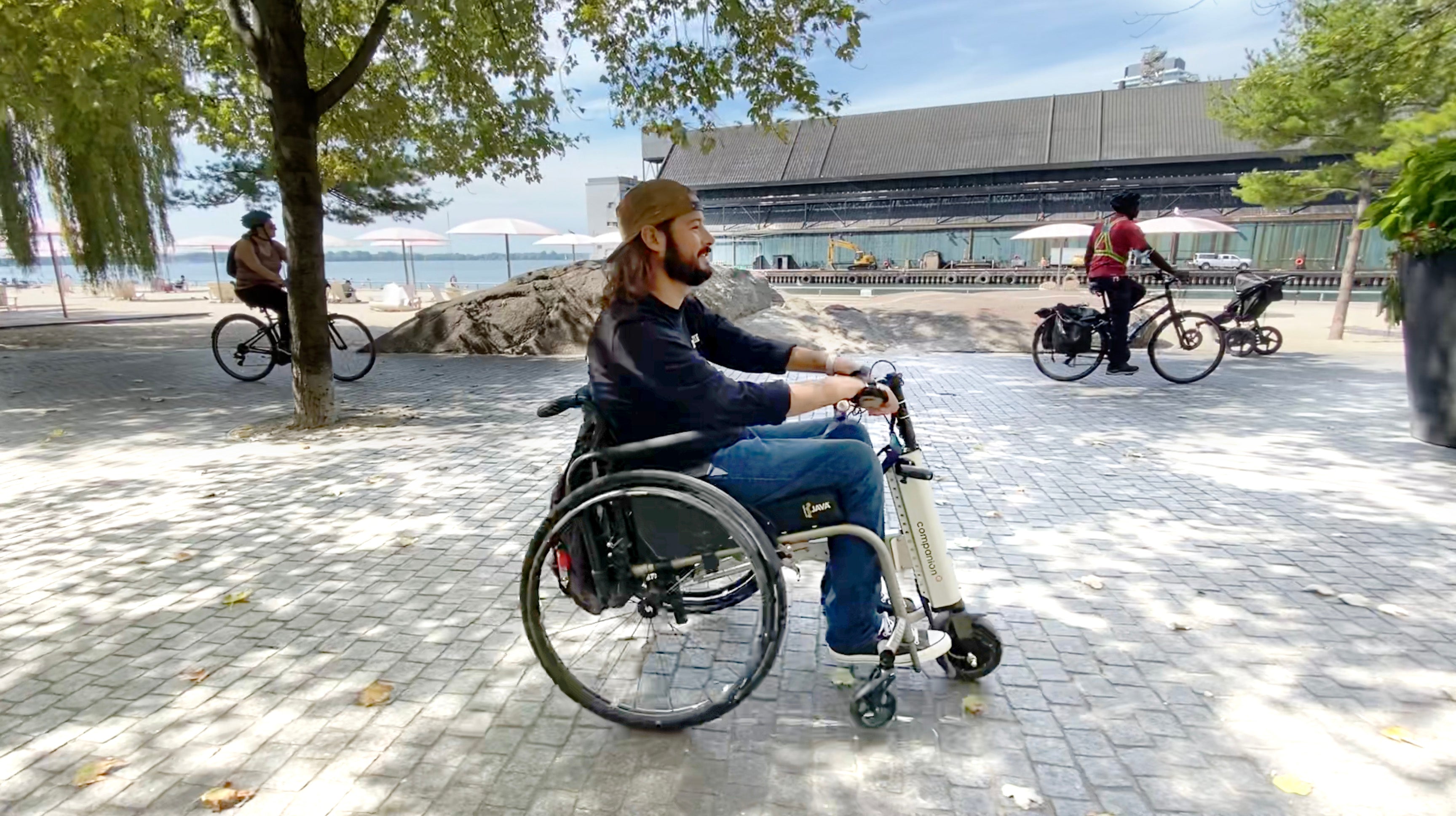 Companion is an indoor-outdoor power add-on made to meet your basic and essential mobility needs. Though it is capable of outdoor terrain such as sidewalks, gravel trails, and manicured grass, it is not made for off-roading. If off-roading is your mobility objective, we recommend considering a larger front-mount option in combination with larger/wider wheelchair wheels. Companion is compatible with Batec mounts and can be used as part of a more comprehensive mobility combination.